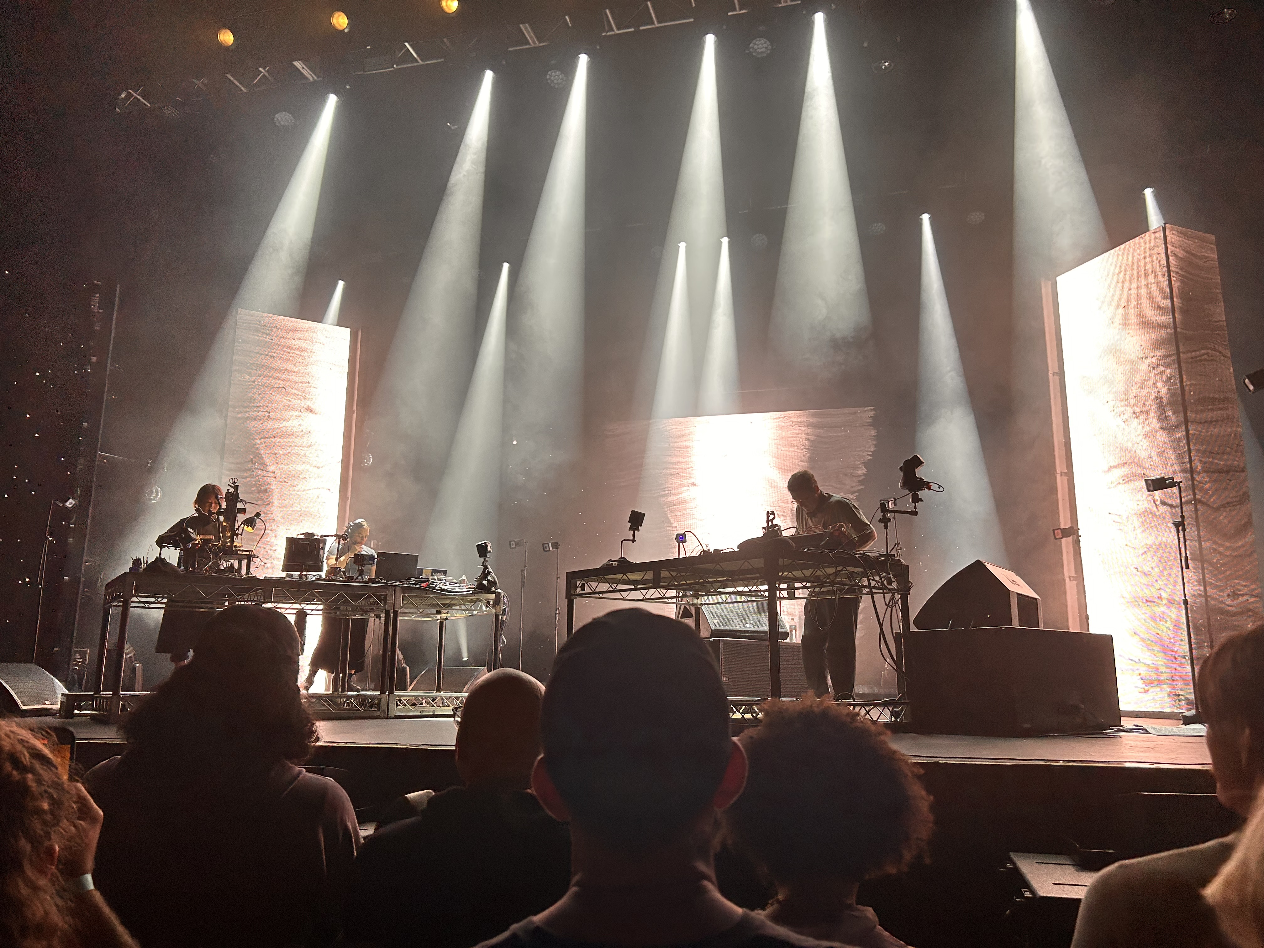 The most interesting part of the show was that the visuals behind were all live - the two people on the left were literally dropping oil paints on water and recording it. Of course, the music was great (it was a live set, not a DJ set).